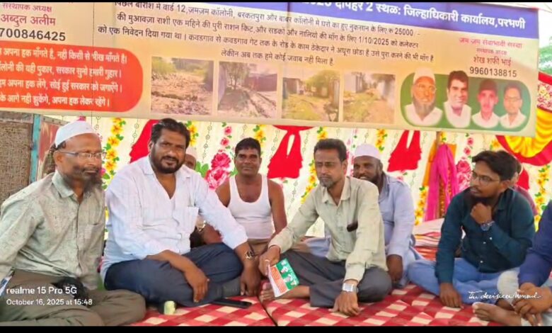 दरगाह रोड के पूर्व नगरसेवक नईम बांड और भावी नगरसेवक सलीम इनामदार ने परभणी (जिला) शहर के वार्ड क्रमांक 12 ज़मज़म कॉलोनी और वार्ड क्रमांक 11 हाजी हामिद कॉलोनी के निवासियों का सार्वजनिक रूप से समर्थन किया है, जो अपने नुकसान के मुआवजे की मांग को लेकर भूख हड़ताल पर हैं।